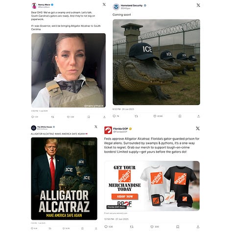 In Florida, a migrant detention camp built in alligator-infested swampland – nicknamed "Alligator Alcatraz" – has become a political brand, complete with merch and photo-ops.